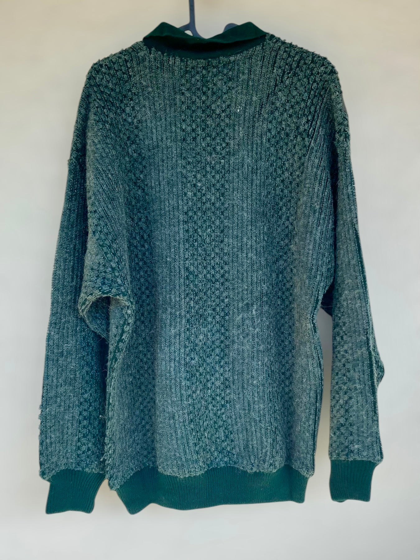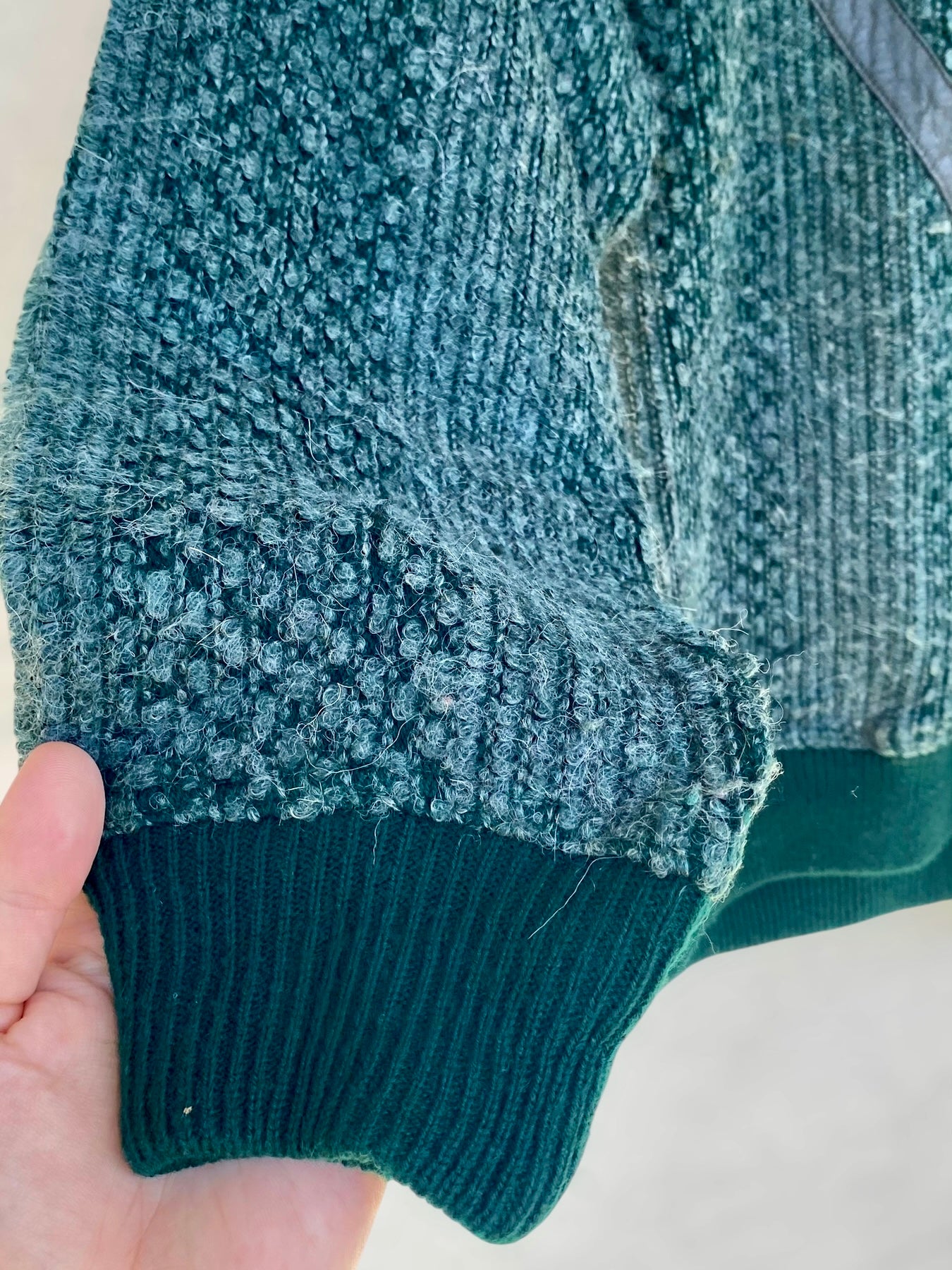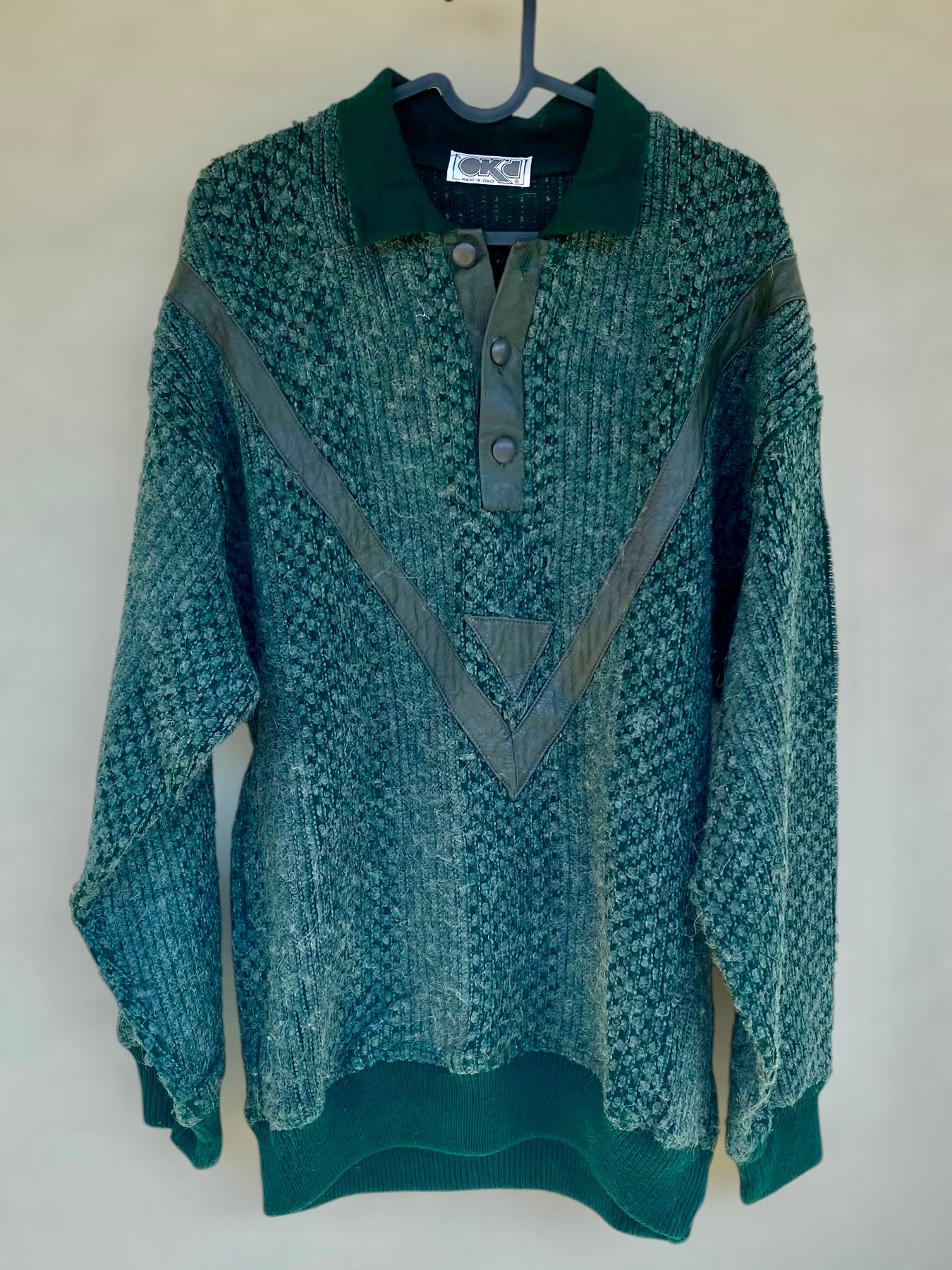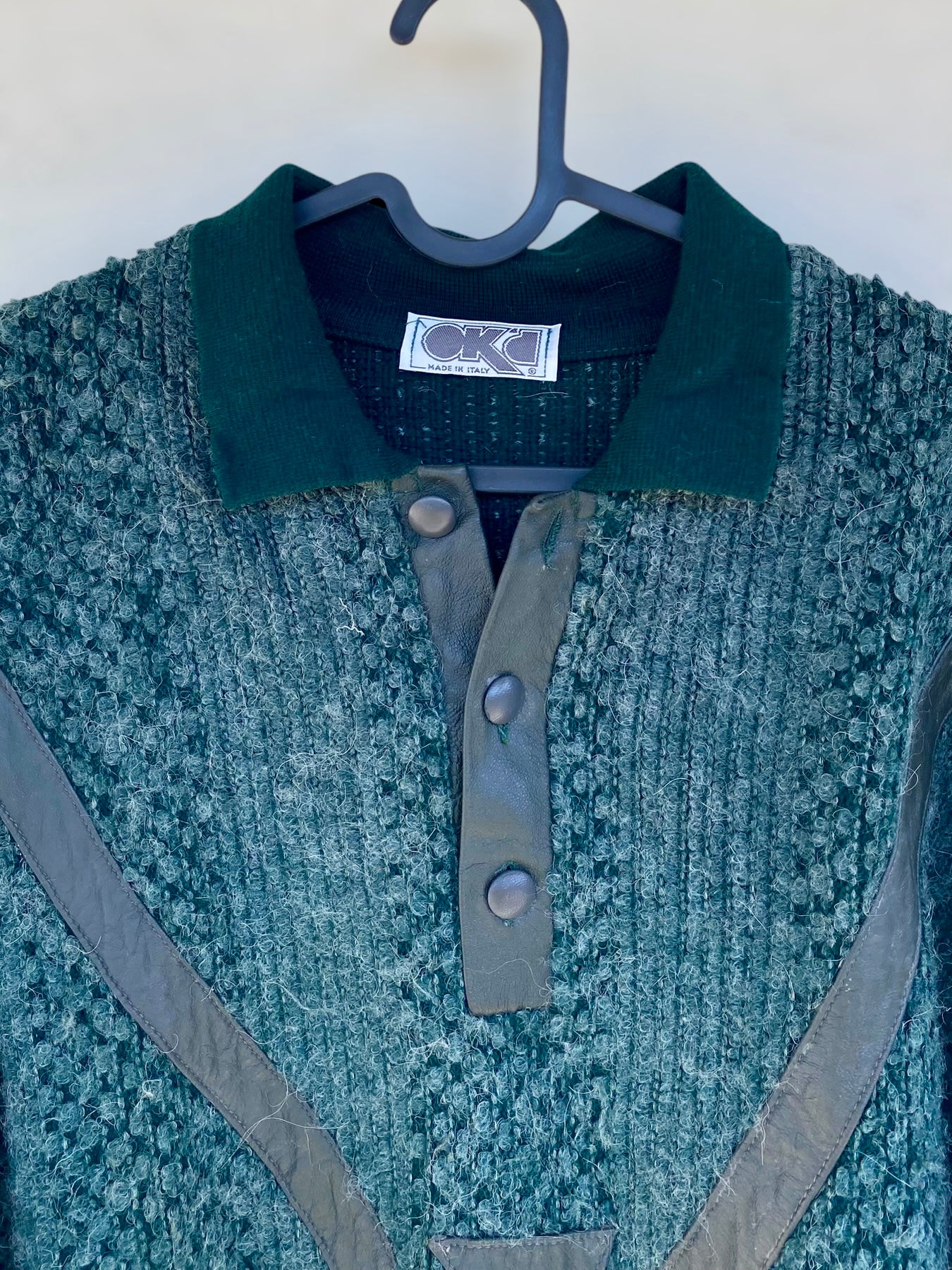 Green alpaca vintage sweater with leatherette details
