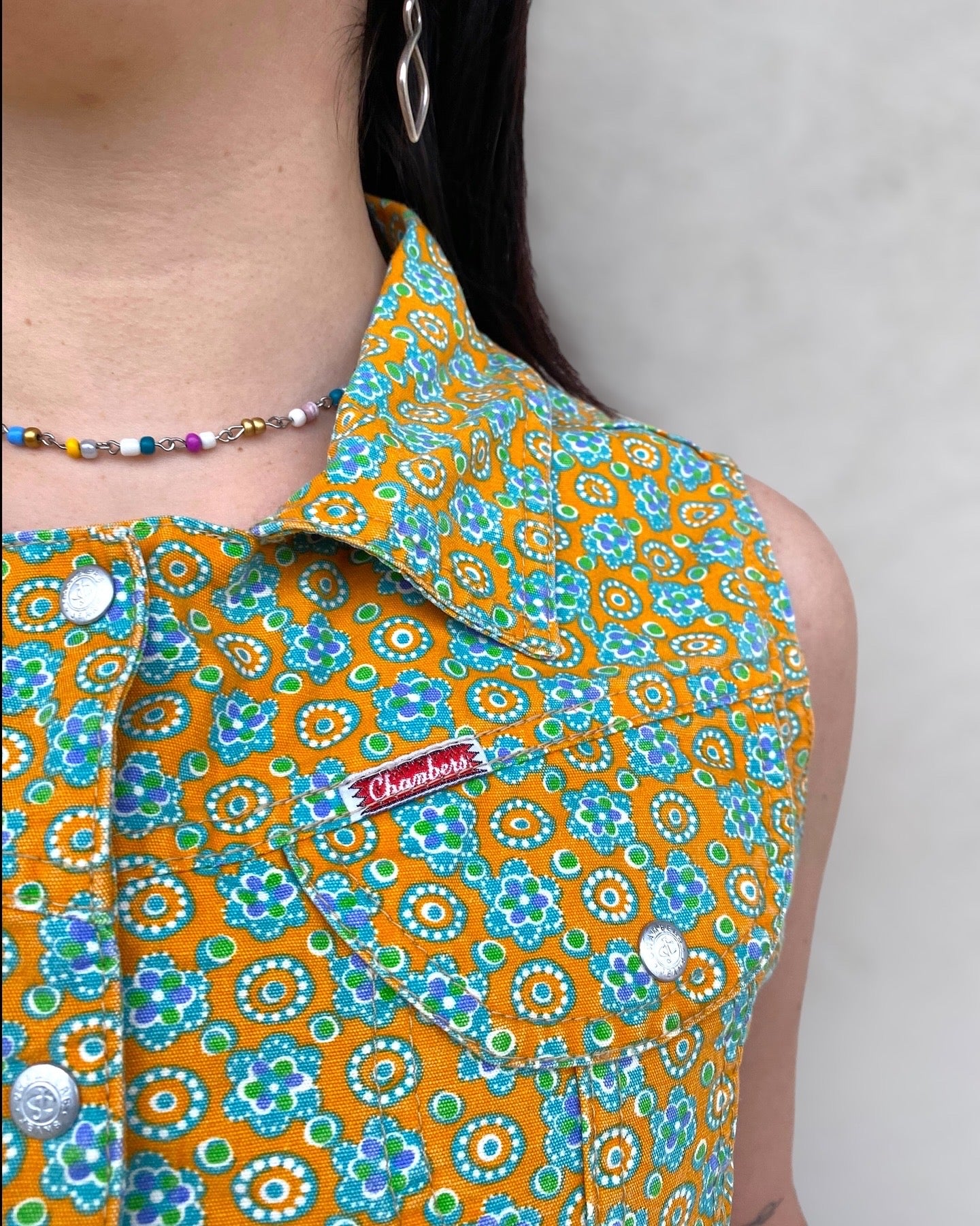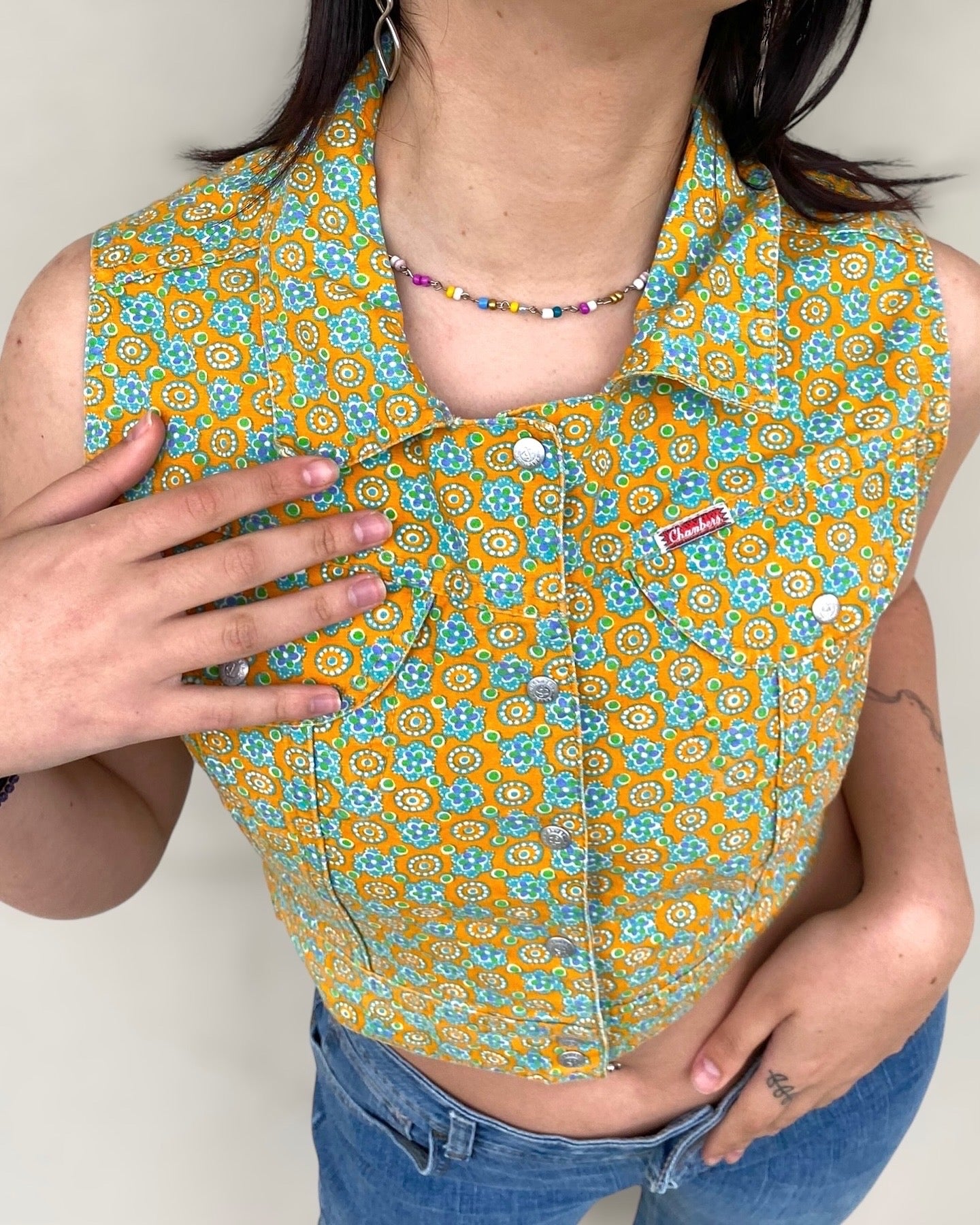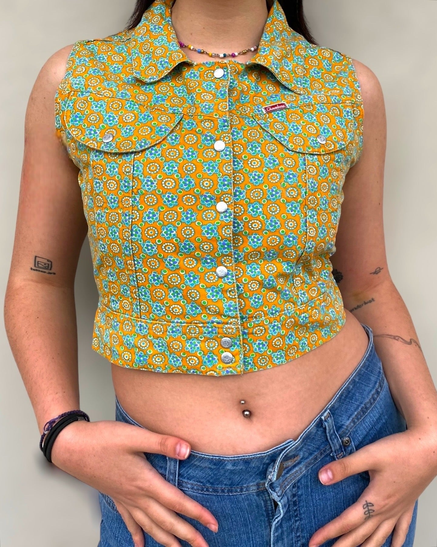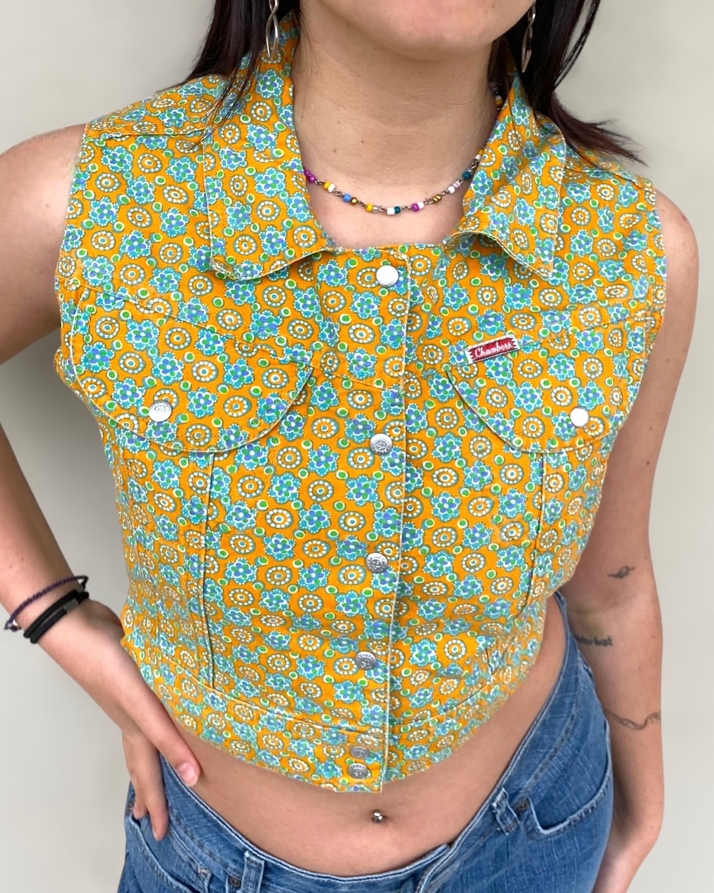 Deadstock 70s Chambers cotton gilet-crop top with flowers